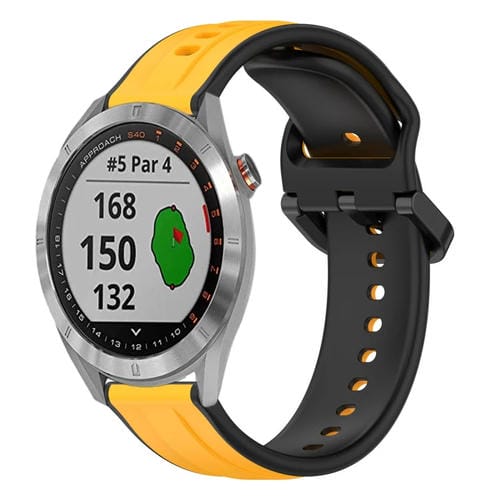 Correa de Reloj para Garmin Approach S40 Silicona Dos Colores 20mm (Amarillo + Negro)