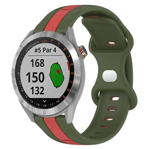 Correa de Reloj para Garmin Approach S40 Silicona Dos Colores con Hebilla de Mariposa 20mm (Rojo + Verde Militar)