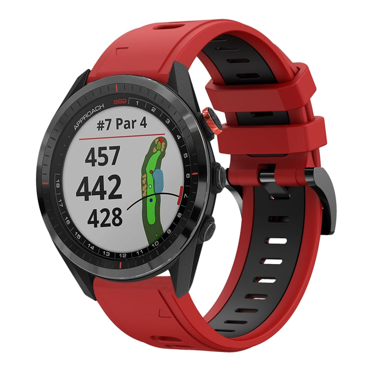 Banda de Reloj de Silicona Deportiva para Garmin Approach S62 22mm (Rojo + Negro)
