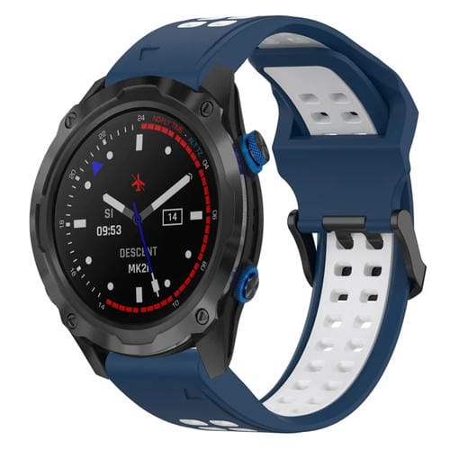 Correa de Silicona para Garmin Descent Mk 2I 26mm con Hebilla Inversa Dos Colores (Azul + Blanco)