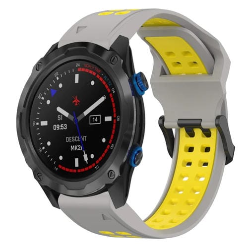 Correa de Silicona para Garmin Descent Mk 2I 26mm con Hebilla Inversa Dos Colores (Gris + Amarillo)