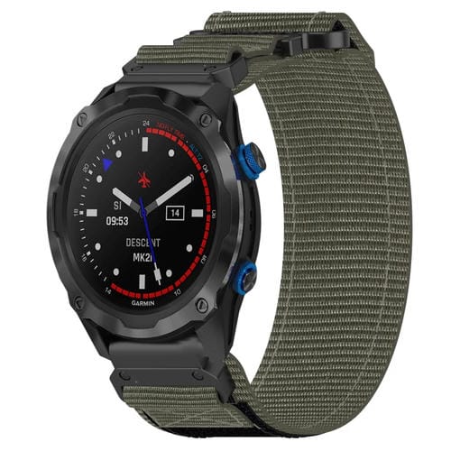 Correa de Reloj para Garmin Descent Mk 2I con Cierre Gancho y Bucle Nailon 26mm (Gris)