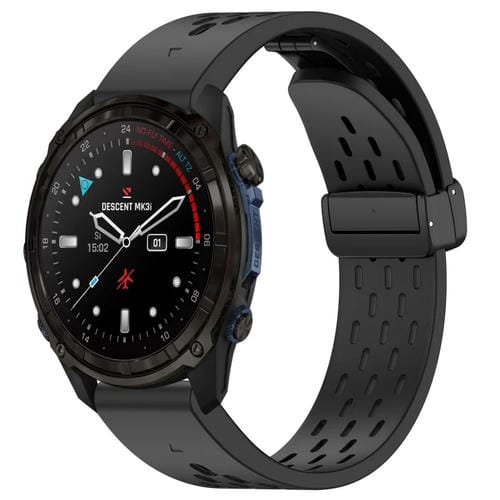Correa de Reloj silicona para Garmin Descent Mk3I Mk3 51mm 26mm con hebilla magnética (Negro)