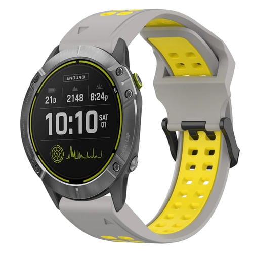 Para Garmin Enduro 26mm Correa de Reloj de Silicona con Hebilla Inversa de Dos Colores (Gris + Amarillo)