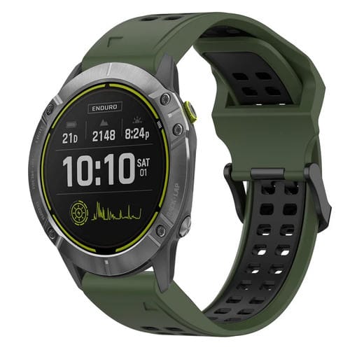 Correa de Reloj para Garmin Enduro 26mm Silicona con Hebilla Inversa Dos Colores (Verde Militar + Negro)
