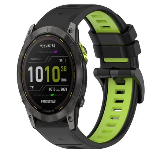 Correa de silicona deportiva para Garmin Enduro 26mm (Negro + Verde Lima)