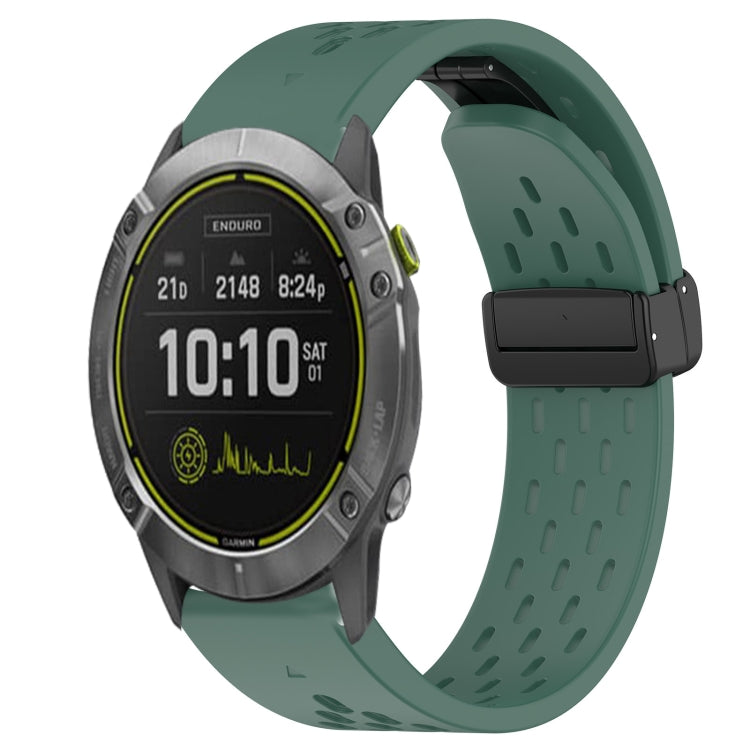 Correa de Reloj de Silicona para Garmin Enduro con Orificio y Hebilla Plegable 26mm (Verde Oscuro)