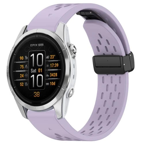 Correa de Silicona para Garmin Epix Pro 42mm 20mm con Hebilla Plegable Magnética (Púrpura)