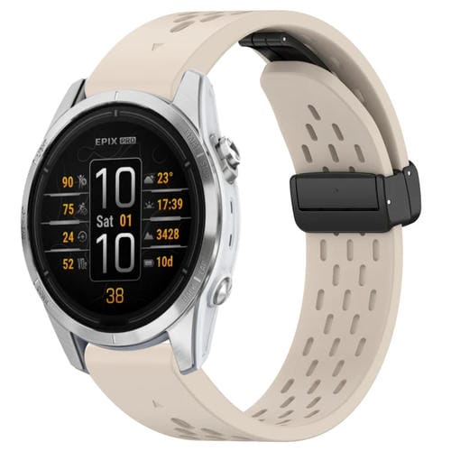Correa de Silicona para Garmin Epix Pro 42mm 20mm con Hebilla Plegable Magnética (Starlight)