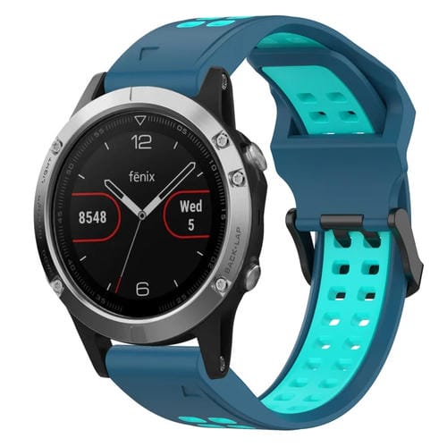 Correa de Silicona para Garmin Fenix 5 22mm con Hebilla Inversa Dos Colores (Azul + Verde Azulado)