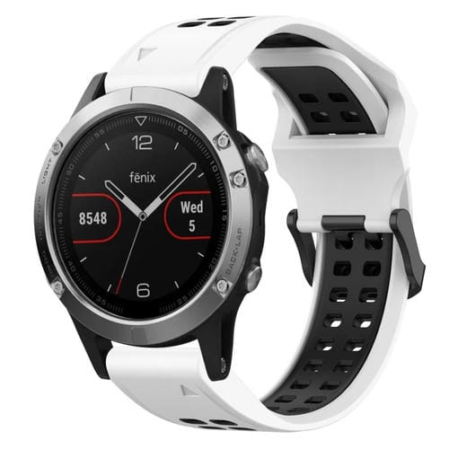 Correa de Silicona Garmin Fenix 5 22mm con Hebilla Inversa Dos Colores (Blanco + Negro)