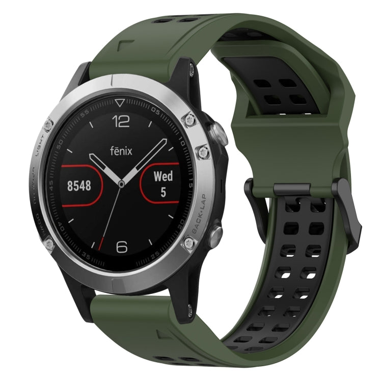 Correa de Reloj Garmin Fenix 5 22mm Silicona con Hebilla Inversa Dos Colores (Verde Militar + Negro)