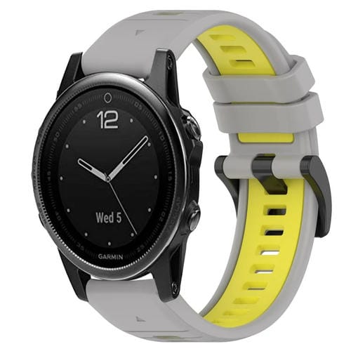 Correa Reloj silicona 20mm Garmin Fenix 5S Sports bicolor (Gris + Amarillo)