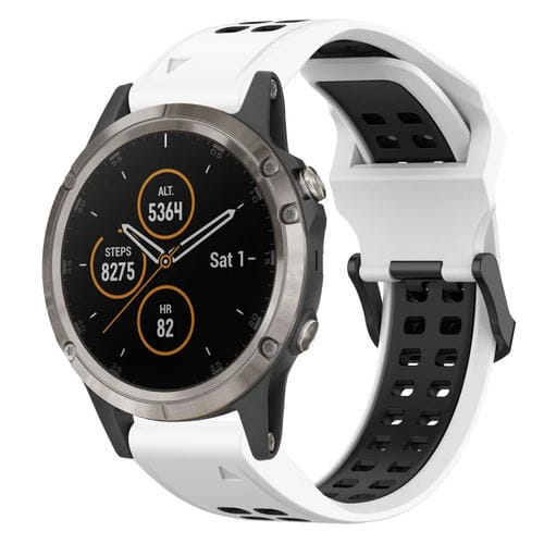 Correa de Reloj para Garmin Fenix 5X Plus 26mm Silicona con Hebilla Inversa Dos Colores (Blanco + Negro)