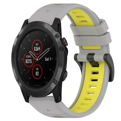 Correa para Garmin Fenix 5X Plus 26mm Silicona Deportiva Dos Colores (Gris + Amarillo)