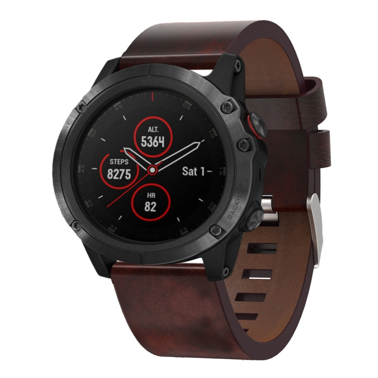 Correa de Reloj Garmin Fenix 5X Plus 26mm Cuero con Hebilla de Acero (Marrón)