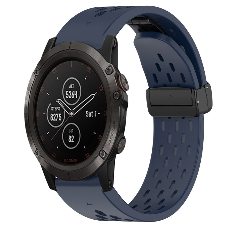 Correa de Reloj Garmin Fenix 5X Plus Silicona con Orificio y Hebilla Plegable 26mm (Azul Medianoche)