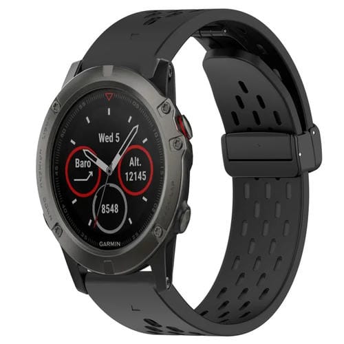 Correa de Reloj para Garmin Fenix 5X Sapphire 26mm Silicona con Orificio y Hebilla Plegable (Negro)