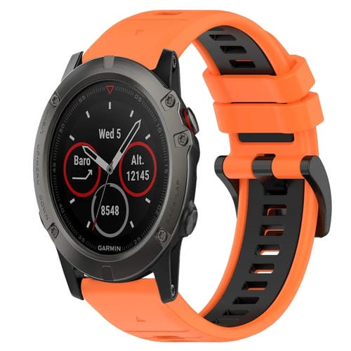 Correa para Garmin Fenix 5X Sapphire 26mm Silicona Deportiva Bicolor (Naranja + Negro)