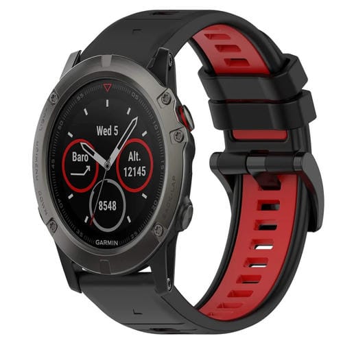 Correa de Silicona para Garmin Fenix 5X Sapphire 26mm Sports (Negro + Rojo)