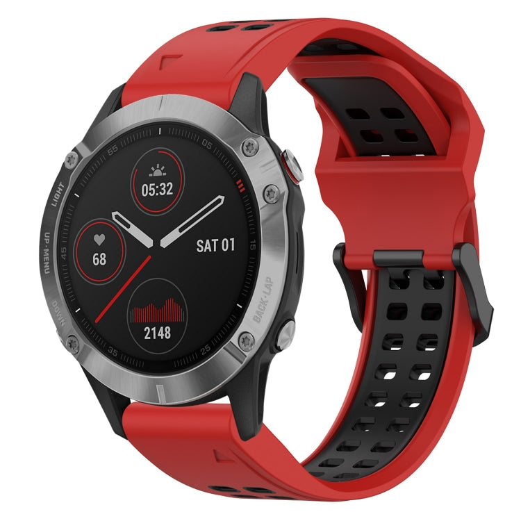 Correa de Reloj Garmin Fenix 6 22mm Silicona con Hebilla Inversa Dos Colores (Rojo + Negro)