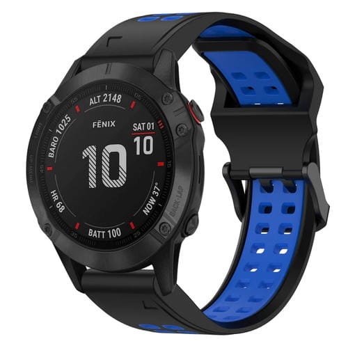 Correa de Reloj Silicona para Garmin Fenix 6 Pro 22mm con Hebilla Inversa Dos Colores (Negro + Azul)
