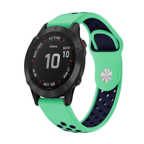 Pour Garmin Fenix ​​​​6 Pro GPS 22 mm Sports Bracelet de montre en silicone respirant (vert menthe + bleu nuit)