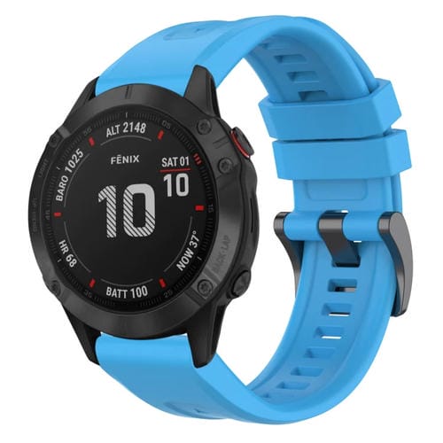 Correa de Silicona para Garmin Fenix 6 Pro GPS con Liberación Rápida y Hebilla Negra (Azul Cielo)