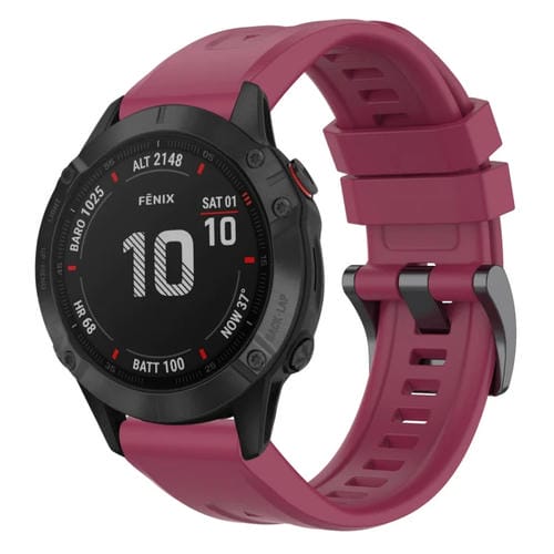 Correa de Silicona para Garmin Fenix 6 Pro GPS con Liberación Rápida y Hebilla Negra (Rojo Vino)