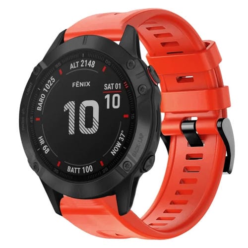 Correa de Silicona para Garmin Fenix 6 Pro con Hebilla de Metal (Rojo)