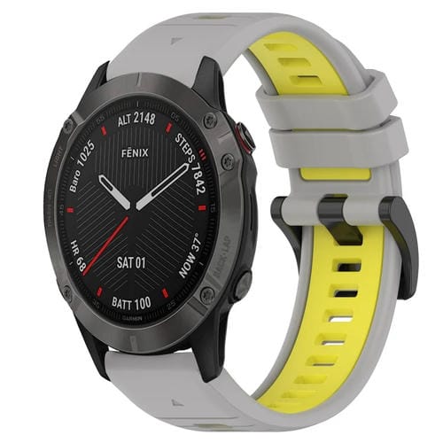 Pour Garmin Fenix ​​​​6 Sapphire GPS 22 mm Sports Bracelet de montre en silicone bicolore (gris + jaune)