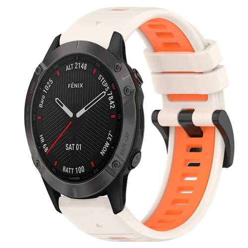 Pour Garmin Fenix ​​​​6 Sapphire GPS 22 mm Sports Bracelet de montre en silicone bicolore (Starlight + Orange)