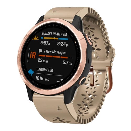Correa de Reloj silicona Garmin Fenix 6S 20mm para mujer con punzón de encaje (Caqui)