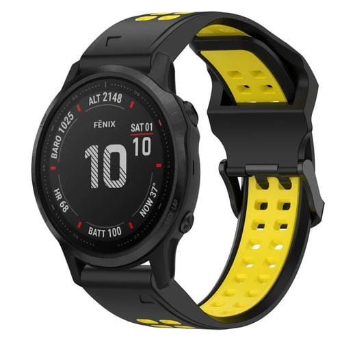Correa de Reloj Silicona Garmin Fenix 6S Pro 20mm Hebilla Inversa (Negro + Amarillo)