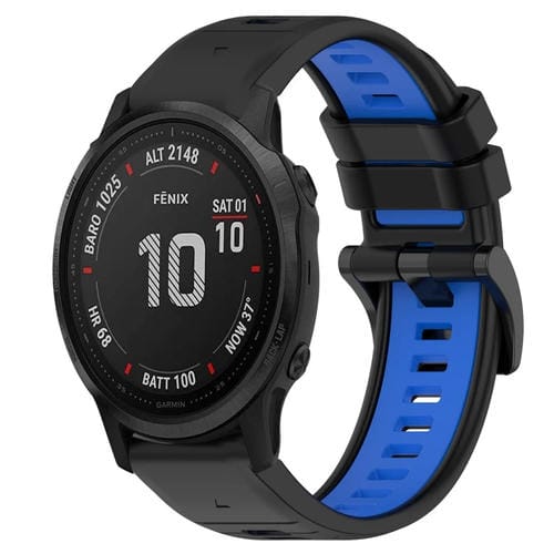 Correa silicona deportiva para Garmin Fenix 6S Pro 20mm (Negro + Azul)