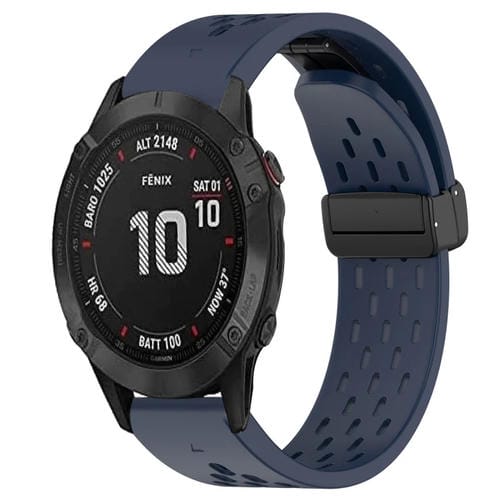 Para Garmin Fenix 6S Pro Correa de Reloj de Silicona con Orificio y Hebilla Plegable de 20mm (Azul Medianoche)