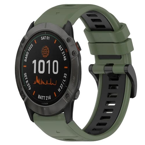 Pour bracelet de montre sport en silicone bicolore Garmin Fenix ​​​​6X 26 mm (vert olive + noir)