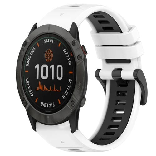 Correa silicona deportiva para Garmin Fenix 6X Pro 26mm dos colores (Blanco + Negro)