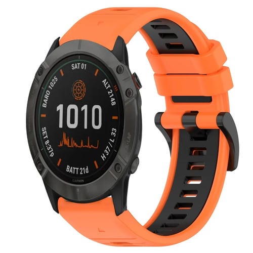 Correa de silicona para Garmin Fenix 6X Pro 26mm Sports dos colores (Naranja + Negro)