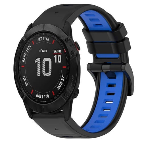 Correa para Garmin Fenix 6X Sapphire 26mm Silicona Deportiva Bicolor (Negro + Azul)