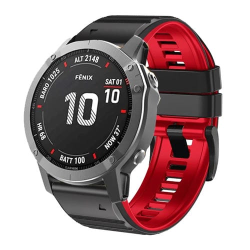 Correa de Reloj Silicona para Garmin Fenix 7 / 6 / 5 22mm (Negro Rojo)