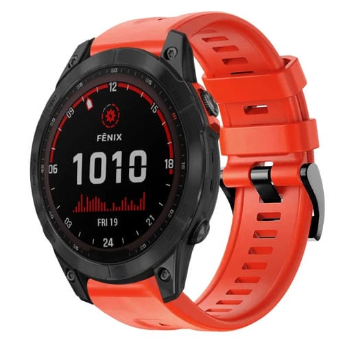 Correa de Silicona para Garmin Fenix 7 con Hebilla de Metal Solar (Rojo)