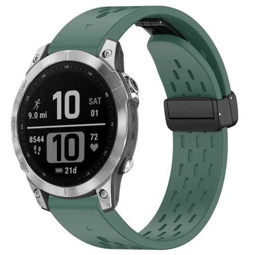 Correa de Reloj Silicona Garmin Fenix 7 / Fenix 7 Pro Hebilla Magnética Orificios 22mm (Verde Oscuro)