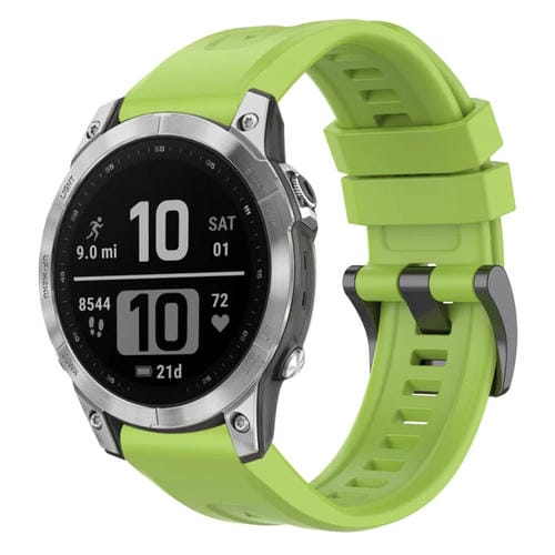 Correa de Silicona para Garmin Fenix 7 Pro con Liberación Rápida y Hebilla Negra (Verde Lima)