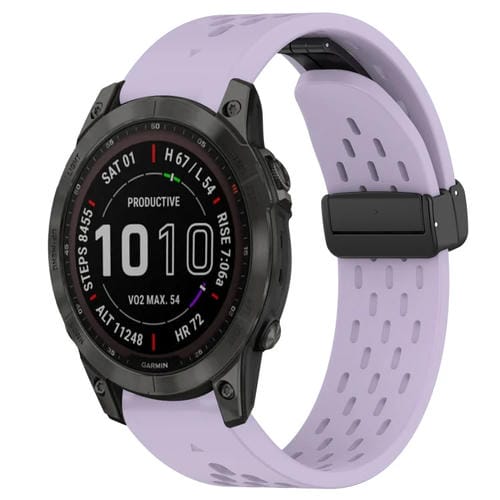 Correa de Silicona para Garmin Fenix 7 Sapphire Solar 22mm con Orificio y Hebilla Plegable (Púrpura)