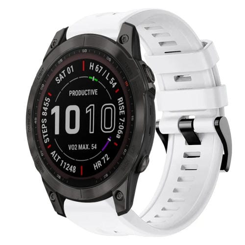 Correa de Silicona para Garmin Fenix 7 Sapphire Solar con Hebilla Metal y Color Blanco