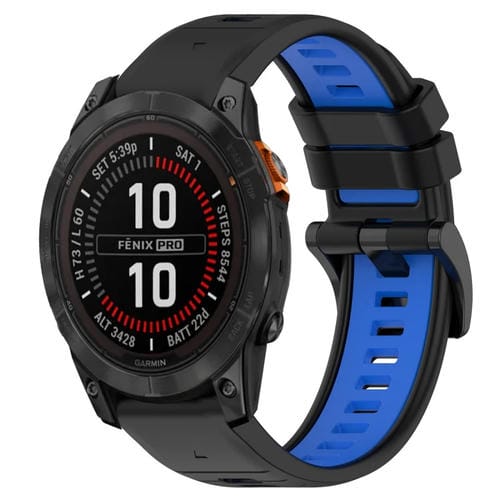 Correa para Garmin Fenix 7X Solar 26mm Silicona Deportiva Bicolor (Negro + Azul)
