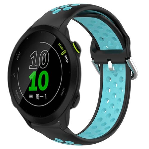 Banda de Reloj para Garmin Forerunner 158 20mm Silicona Deportiva Transpirable Perforada (Negro + Azul)