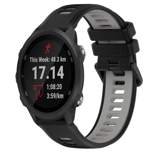Pulsera deportiva silicona 20mm para Garmin Forerunner 245 Music (Negro + Gris)