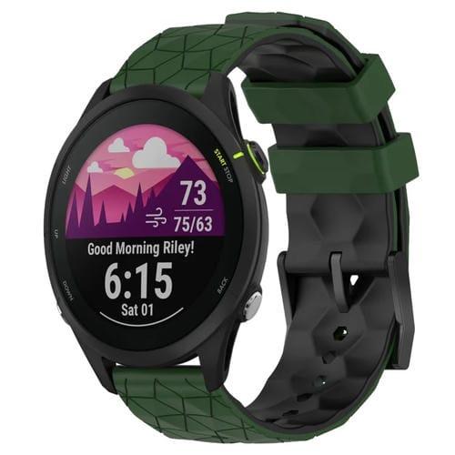 Banda de Reloj de Silicona Para Garmin Forerunner 255 22mm Patrón de Fútbol (Verde Militar + Negro)